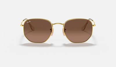 Round Hexagonal Flat Lenses RB3548 Sunglasses Gradient + Gold Frame Brown Gradient Lens