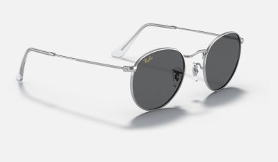 Round Metal Legend RB3447 Sunglasses Classic + Shiny Silver Frame Dark Grey Classic Lens