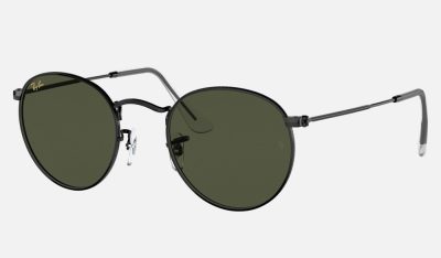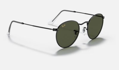 Round Metal Legend RB3447 Sunglasses Classic G-15 + Shiny Black Frame Green Classic G-15 Lens