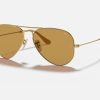 Mirror your style with Ray-Ban Aviator Mirror sunglasses. Ray-Ban Aviator Sunglasses were designed in 1937 to protect US military fighters against the high altitude glare. Ray-Ban Aviator Mirror combines this iconic model with mirrored lenses, so you not only have extra protection from light transmission, but you’ll also shine on stage. Wear the Ray-Ban Aviator Mirror RB3025 sunglasses in a variety of frame colors and lens treatments including photo yellow and crystal gold mirror.