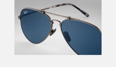 Ray-Ban Aviator defies gravity with this ultra-light Titanium frame, Made in Japan. Built for those with a strong taste for excellence and precision. Featuring ultra-fine filigree engraving on both the front and temples, all with brushed finishing. Available in white gold with G15 green lenses, antique gold with gray lenses, pewter with blue lenses, shiny white gold with crystal green polarized lenses.