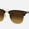 Available only on Ray-Ban.com, these Clubmaster inspired sunglasses feature even more elegant touches. With a contemporary design, they still manage to keep it retro. All styles in this collection contain solid classic lenses, unique golden details on black and tortoise finishes. Make a bold statement with these frames, all shipped in premium Ray-Ban packaging immortalized with an @Collection engraving.