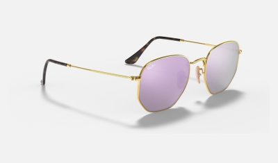 Hexagonal Flat Lenses RB3548 Sunglasses Mirror + Gold Frame Lilac Mirror Lens