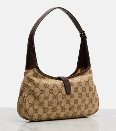Gucci redefines luxury and pursues its commitment to excellence and creativity. Part of La Famiglia collection, the Jackie Slim Small shoulder bag is crafted from signature GG Canvas and comes in a slouchy silhouette complete with a golden piston closure and smooth leather trims.