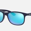 Adding a fresh twist to the Wayfarer family, Ray-Ban Andy joins the Highstreet Collection. Inspired by the iconic style, Andy RB4202 brings fresh frame colors, stunning mirrored lenses and a unique rubberized frame finish to your look. With frame color options such as violet, turquoise, black and blue, these cutting-edge sunglasses will not only bring excitement to your life, but will also add some edge to your style. Prepare to be the next fashion statement amongst your peers with the iconic Ray-Ban Andy, becoming unforgettable with these bold and fun frame colors.