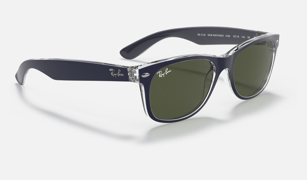 New Wayfarer Bicolor RB2132 Sunglasses Classic G-15 + Blue Frame Green Classic G-15 Lens
