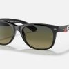 Color your world and bring out the best in your new look with the New Wayfarer Bicolor. For smooth long-lasting appeal, these styles combine dark single tone fronts with bi-layer colors on the temples. The New Wayfarer Bicolor comes with green crystal or gradient lenses for a contemporary look and feel. Distinctive 3D rivets, in-mould labelling and Ray-Ban shaped temples put the finishing touches on a high-impact look that brings color and style to the world.