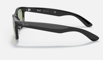 New Wayfarer Classic Low Bridge Fit RB2132 Sunglasses Mirror + Shiny Black Frame Green Mirror Lens