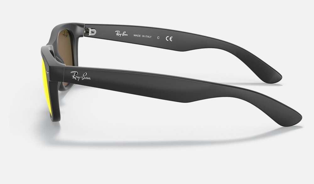 Ray-Ban New Wayfarer Matte Flash sunglasses are an exclusive model of the Wayfarer family. Featuring the same style and fit as the New Wayfarer Classic, New Wayfarer Matte Flash RB2132 sunglasses are designed with a bright splash of color to assure you won’t go unnoticed. Ray-Ban New Wayfarer Matte Flash is offered in matte black and a variety of lens treatments such as green flash, blue flash and orange flash.