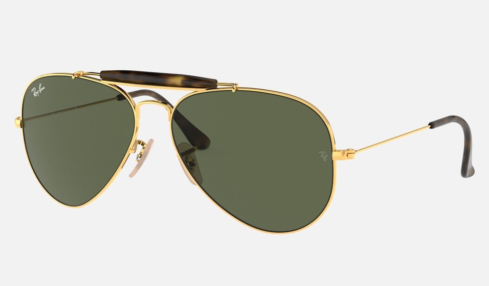 Ray-Ban Outdoorsman La Havana edition adds even more flavor to a shape as iconic as the Original Aviator. The La Havana Outdoorsman features an enhanced brow bar and crystal lenses in grey and green. Outdoorsman sunglasses are a bold take on a timeless style. The metal frames come in gold with Havana acetate details on the temple tips and brow bar. The La Havana Outdoorsman embraces the vibe of old Cuba in a new Ray-Ban rhythm while keeping the iconic style, quality and comfort of the original.