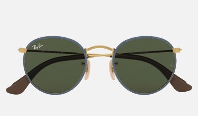Emerge from the crowd with Ray-Ban Round Craft sunglasses. These round sunglasses add edginess to the iconic retro look with genuine hand-stitched leather around circular crystal lenses and temple ends. The timeless look of the Round Craft RB3475Q was first made famous by legendary musicians and celebrated personalities from the 1960’s, and has resurfaced as one of the most trendy and fashionable styles today. The unique detail and fine craftsmanship of the Ray-Ban Round Craft sunglasses makes this model a striking edition to the Icon family. Round Craft features a slim frame and lens shape that flatters those with small to medium faces and is offered in crystal green or brown lenses that are prescription-friendly.