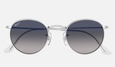 Round Flat Lenses RB3447 Sunglasses Polarized Gradient + Silver Frame Blue/Grey Gradient Lens